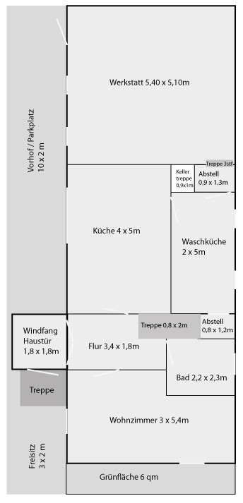 - Im Obergeschoss ist keine Wasserversorgung / Abwasserentsorgung vorhanden.